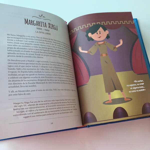 El libro se articula en dobles páginas. En la página de la izquierda encontramos el texto relativo a cada personalidad influyente y en la página de la derecha una ilustración para que podamos conocerle, como si de una fotografía se tratara.