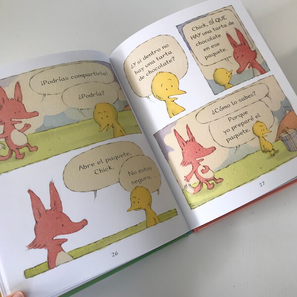 Fox y Chick son dos personajes completamente diferentes y, sin embargo, amigos, que se complementan y disfrutan del tiempo juntos de una forma sencilla y vital. Fox es un zorro sensato y relajado y Chick es un pollito puro nervio, impulsivo, atolondrado e inmaduro. Juntos logran un equilibrio de espíritus que queda muy bien plasmado en el papel. Una de las amistades más bonitas que hayamos leído en los últimos años.