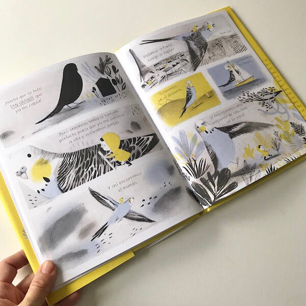 Estamos ante un libro lleno de detalles, tanto en las ilustraciones como en la historia en si. Nosotros hemos apreciado muchos detalles en sucesivas lecturas que en una primera se nos pasaron por alto. Por ejemplo, situaciones en las que Colette se va inspirando, quizá incluso inconscientemente, para seguir adornando su historia: el canto del pájaro de un vecino o el color de una flor para luego asignárselo a su periquita.