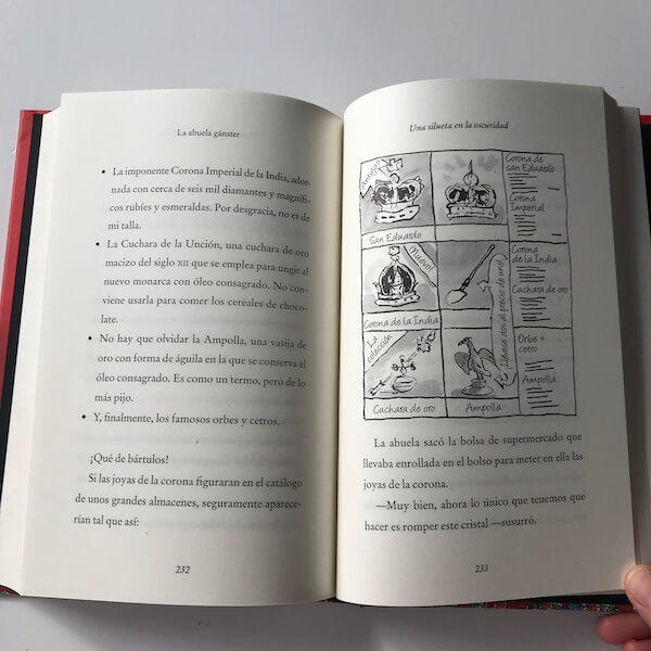 La increíble historia de La Abuela Gánster está escrito de forma sencilla, con bastantes diálogos y un tipo y espaciado de letra que hace que la lectura sea muy ágil. Tiene algunas ilustraciones, en blanco y negro, algunas verdaderamente divertidas.